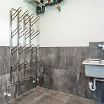 Die Unterkunft verfügt über einen Essbereich mit einer Kaffee-/Teemaschine, einem Kühlschrank und Küchenutensilien.